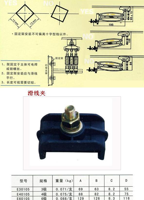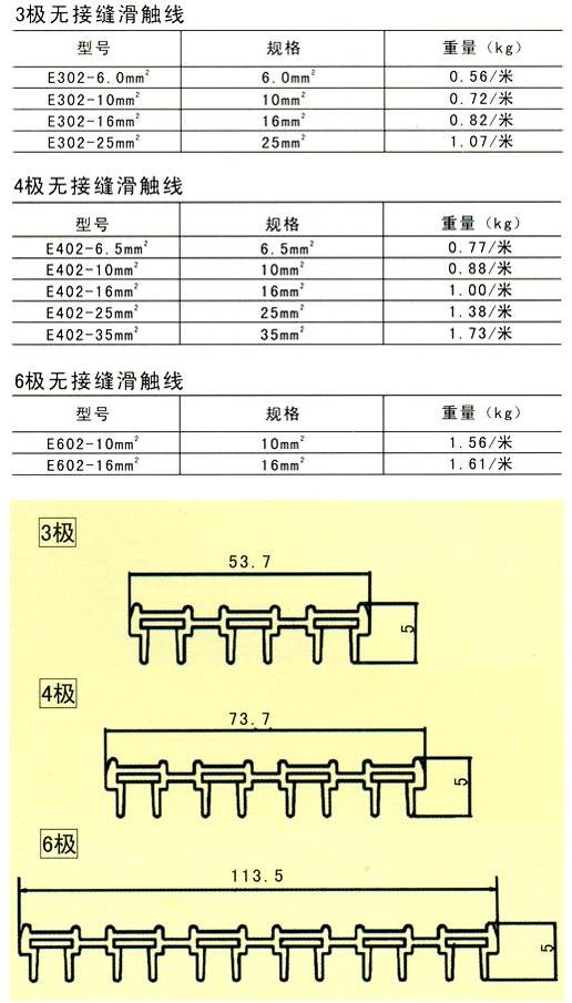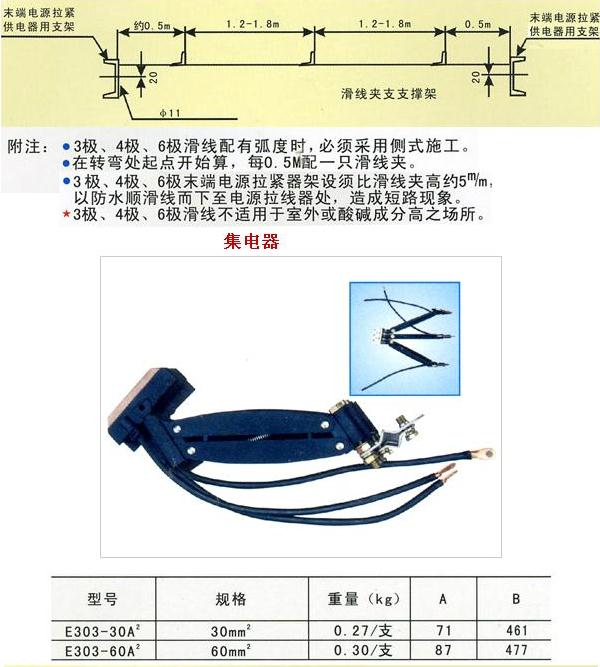 柔性一體式滑觸線是以無氧銅(導(dǎo)電率達(dá)99.99%)輸送電源、銅導(dǎo)體之厚度厚(一般標(biāo)準(zhǔn)厚為2.8m/m×10W)、壓降小、導(dǎo)電率倍佳;可根據(jù)用戶的車間長度或用戶的需求來配一條以之相同長度的安全電軌,使整個車間安全配電中間沒有任何接口,真正解決了國產(chǎn)滑觸線因接口多經(jīng)??ㄗ〖娝⒍斐啥搪坊虿荒苓\(yùn)行的問題。并且適用于曲線、弧形及高低行走的設(shè)計(jì),并且安裝簡便。從而使整套天車工程美觀、整潔又安全。產(chǎn)品有3P、
