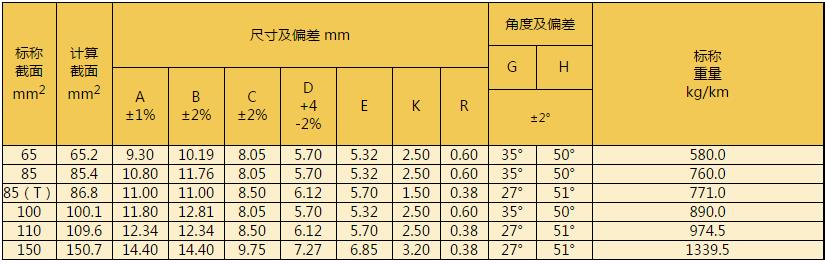 電車(chē)滑觸線(xiàn)鐵標(biāo)(TB/T2810-1991)銅接觸線(xiàn)尺寸表